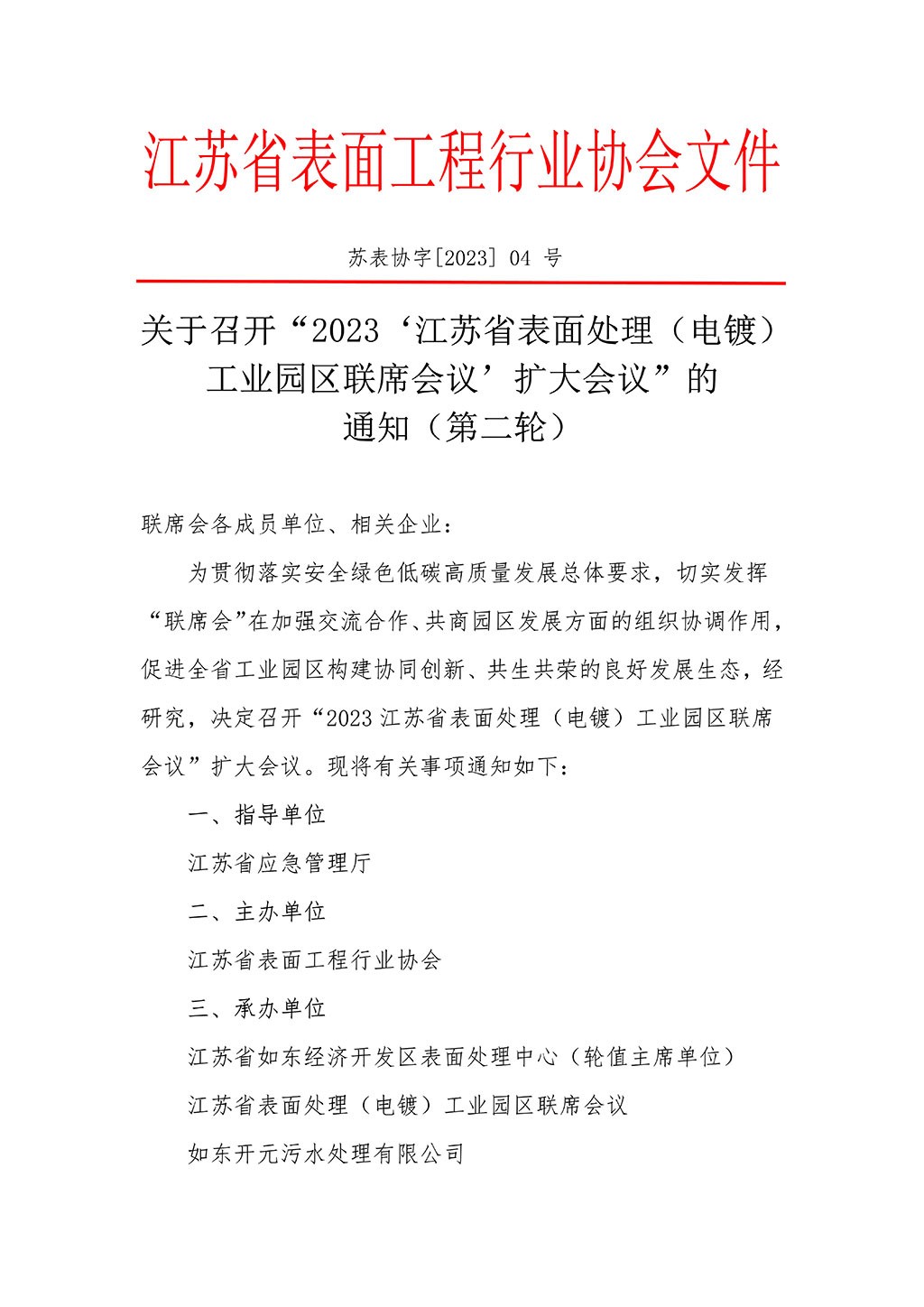 关于召开“2023江苏省表面处理(电镀)工业园区联席会议”扩大会议的通知(第二轮)